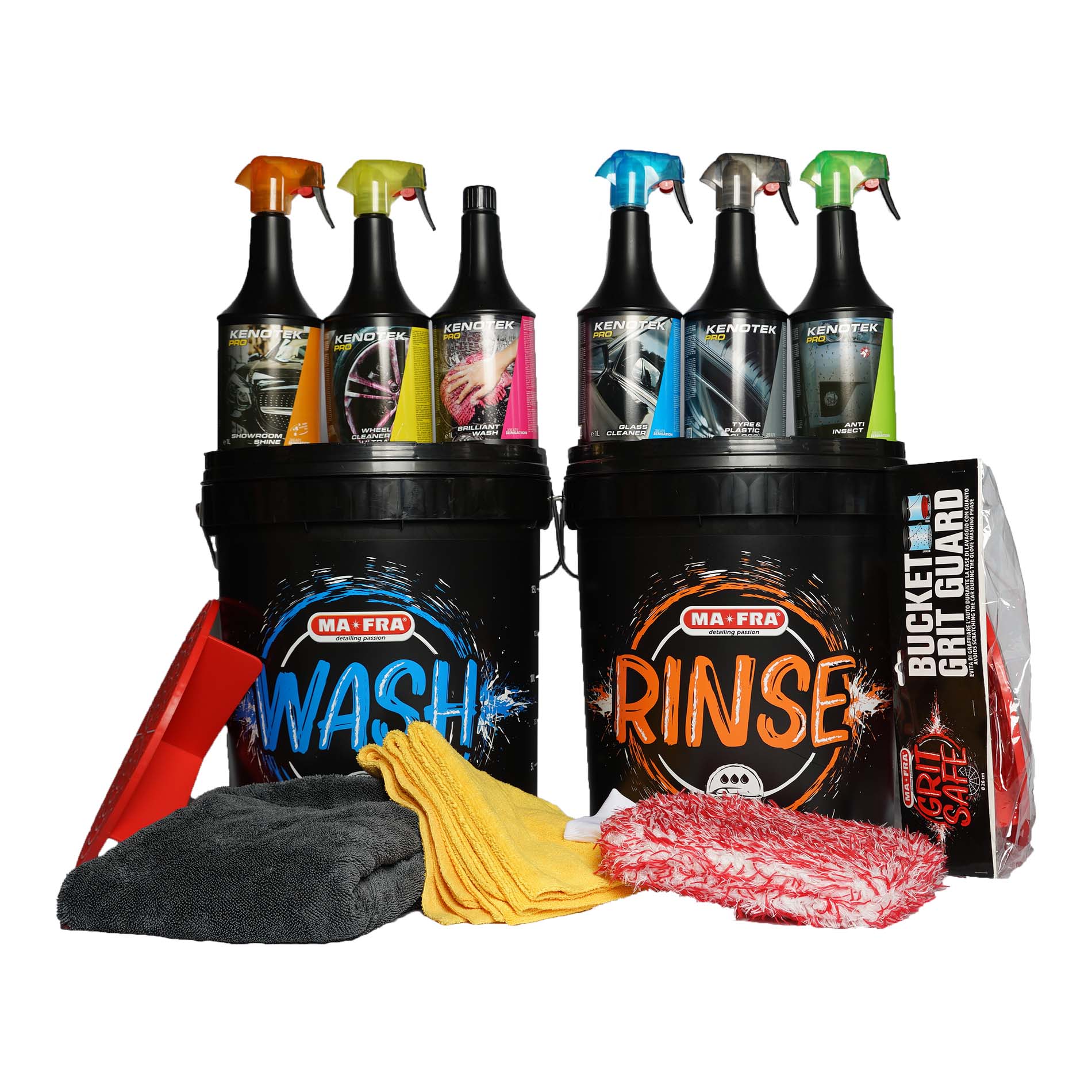2x Gritguard inlegrooster – Om ervoor te zorgen dat vuil en zand op de bodem van de emmer blijven, is het gebruik van een gritguard inlegrooster essentieel. Dit rooster voorkomt dat vuil tijdens het wassen door het water wordt opgewerveld en weer op uw auto terecht komt. Door het gebruik van een gritguard inlegrooster worden swirls en krassen tijdens het wassen geminimaliseerd, wat resulteert in een nog beter eindresultaat.