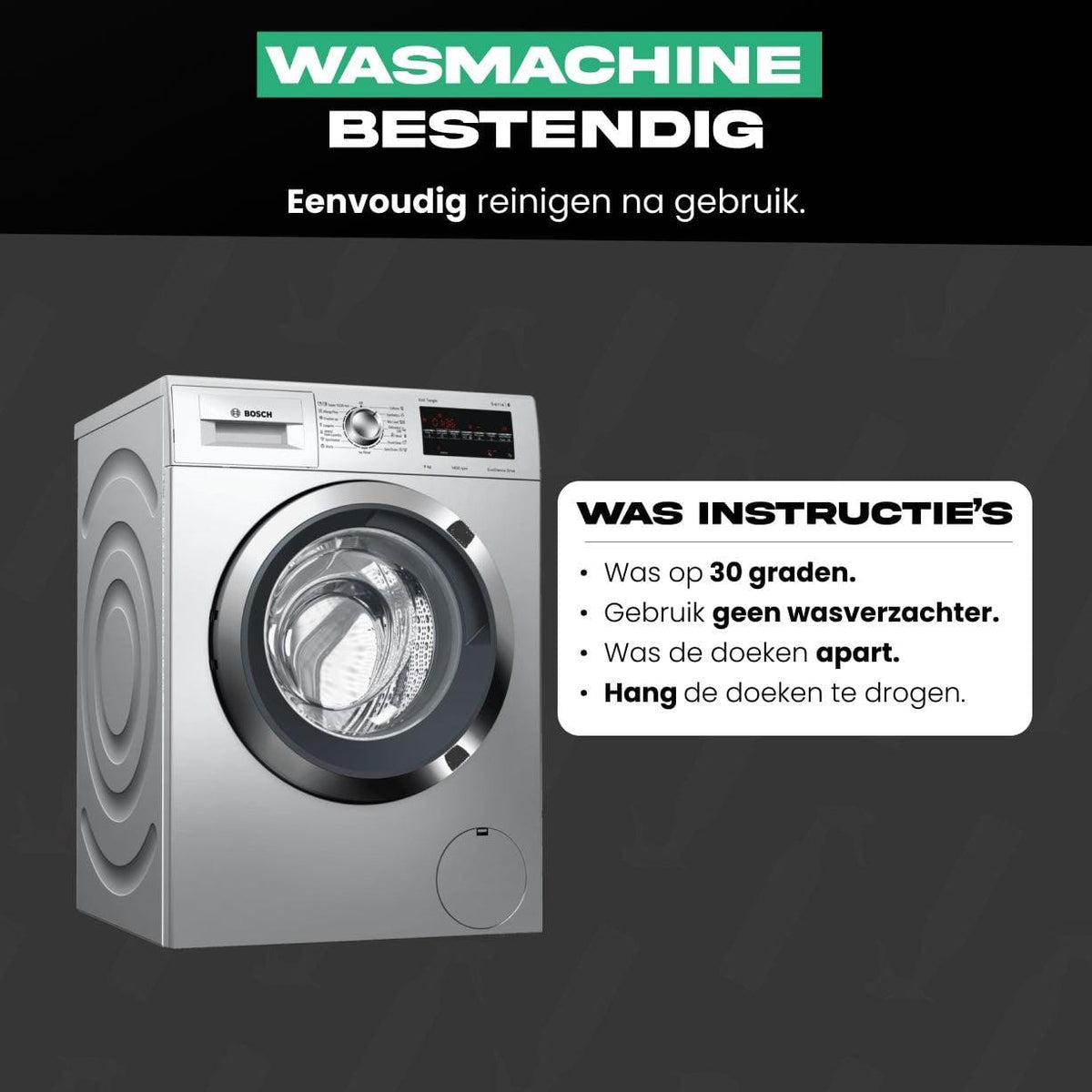 2. Gebruik GEEN wasverzachter.