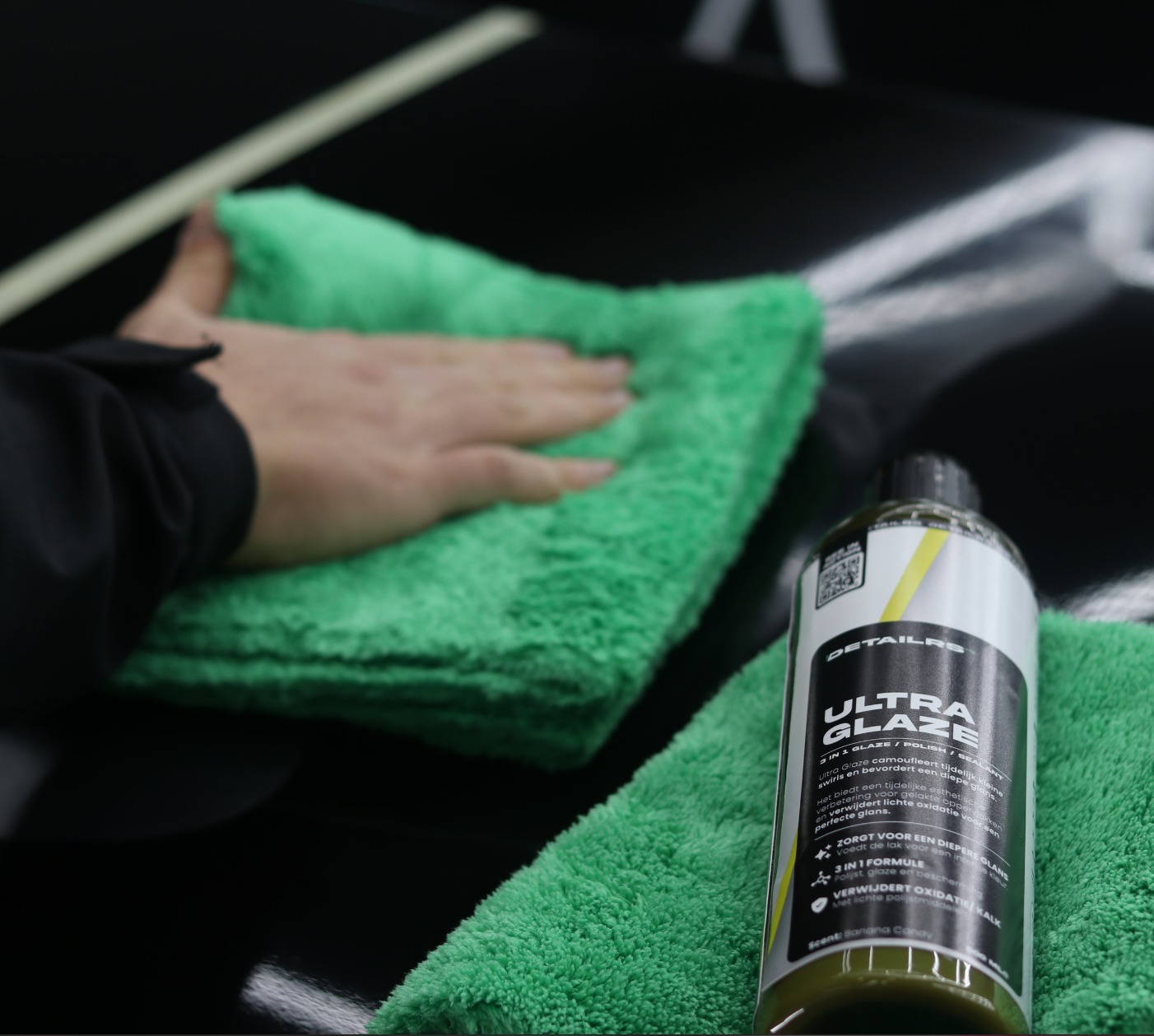 Detailrs Ultra Glaze is een geavanceerde 3-in-1 oplossing die speciaal is ontworpen om je voertuig een onberispelijke uitstraling te geven. Dit product combineert drie functies in één: reinigen, lichte polijsting en bescherming. Het biedt een eenvoudige en snelle manier om lichte lakoneffenheden, zoals kleine krassen en swirls, te maskeren, terwijl het een diepe glans achterlaat en een beschermende laag toevoegt. Het is ideaal voor autoliefhebbers die hun voertuig een professionele uitstraling willen geven zonder de tijd of moeite van uitgebreid polijsten.